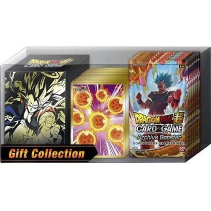 Denne Dragon Ball SCG -gavekollektion indeholder fire arkivforstærkerpakker i denne nyligt designede dækkasse og kort ærme sæt til spillere!