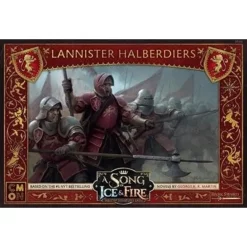 Lannister Halberdiers Unit Box til A Song of Ice and Fire: Tabletop Miniatures -spillet giver Lannister -kommandører nye muligheder for deres styrker. Enheden er formidabel i både stødende og defensiv kapacitet, ikke at miste terninger, efter at deres før