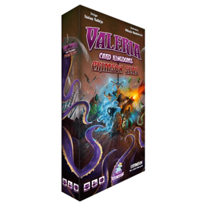 I Crimson Seas vil du få kort til nye fjerntliggende lande ud over Valerias grænser, der giver dig mulighed for at importere handelsvarer fra Araby for at øge dine sejrpoint, købe tomes med stor magt til at øge din ressourceproduktion, reddede redning adelige fra det skurkagtige Amarynth imperium og plyndrer rigdommen på den forbandede ø. Pas dog på havets monstre, når de øges i styrke, så kaos i hele Valeria.