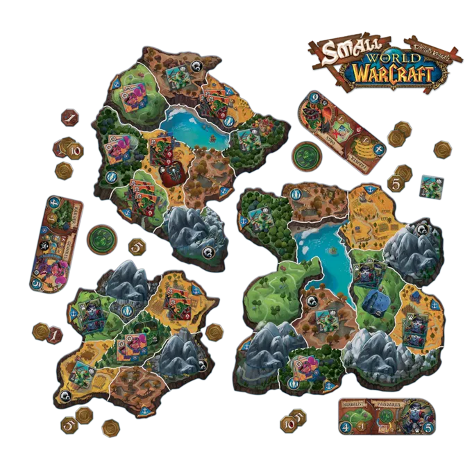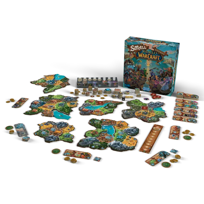 Small World of Warcraft er et selvstændigt spil Designet til 2 til 5 spillere. Det inkluderer 6 dobbeltsidede tavler, 16 Warcraft-løbsbannere, 182 matchende race-tokens og 15 murloc-tokens, 20 unikke specielle magtskemaer, 5-spillers resumeark, 12 artefakt- og legendariske stedmarkører, 10 bjerge, 9 Wisp-vægge, 4 harmoni tokens , 12 bomber, 1 mester, 10 forter, 2 militære mål, 5 dyr, 6 urtårne, 110 sejrmønter, 1 brugerdefineret forstærkning, 1 spil turn -spor, 1 spil turn -markør, en regelbog og et holdvariant regler ark.