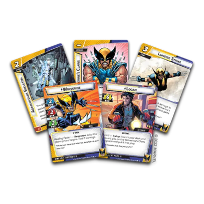 Denne længe ventede helt skærer sig i kamp med denne ekspansionspakke, der introducerer Wolverine som En ny spillbar helt sammen med sine seksten signaturkort. Med et forudbygget aggressionsdæk, der er klar til at spille fra get-go, vil du være i stand til at rive dig vej gennem skurkerne og deres minions med Wolverines playstyle med høj skade fra det øjeblik, du åbner kassen. Med sin kraftige helingsfaktor og afvisning af at slå sig ned, er Wolverine en helt, der fortsætter med at kæmpe indtil slutningen.