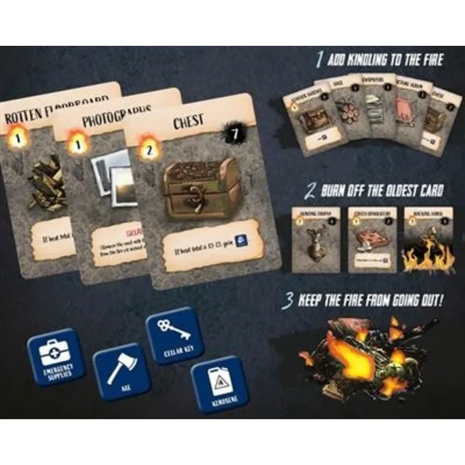 Den koldeste aften er et kooperativt strategisk kortspil, hvor spillerne fodrer brændstof til en brand for at holde det oplyst. Hvert kort bringer en bestemt mængde varme til ilden og kræver også, at ilden er over en bestemt varme for at brænde den. Når i