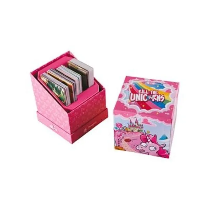 Kill The Unicorns er et blindt bud- og indsamlingskortspil. Du spiller som en af Queendoms unikke karakterer – fang så mange enhjørninger som du kan, ideelt uden ved et uheld at fange en ildelugtende enhjørning eller en svinemødr!