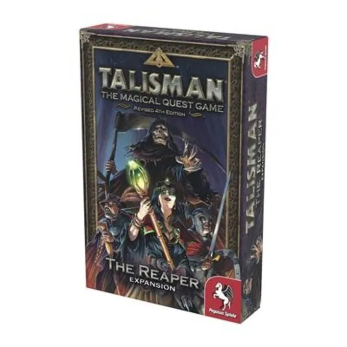 “The Reaper Expansion” tilbyder Talisman reviderede 4. udgave spillere 4 nye karakterkort og plastfigurer (mørk kultist, salvie, ridder og købmand), 90 nye eventyrkort, 26 nye stavekort, 12 Warlock Quest -kort og Grimreaper, A Mørk figur, som spillerne ma