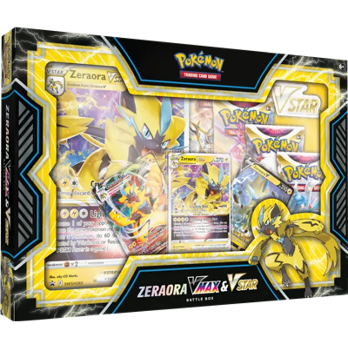 Vælg en mytisk Pokémon for at stå ved din side – hver ankommer som en trio af magtfuld Pokémon V, der kan tage Dit dæk til det næste niveau! Du kan udvikle Deoxys V for at udnytte den høje HP af Deoxys Vmax i forsvarsforme eller den ødelæggende VStar-magt af Deoxys vStar i angrebsforme-eller udvikle Zeraora V for at imødegå din modstanders strategi med de hårdt ramte angreb fra Zeraora VMAX eller Lightning- Slående VStar -magt fra Zeraora VStar. Du finder også et fantastisk overdimensioneret kort, der viser den fremhævede Pokémon VStar, Booster Packs, en strategiduide og en VStar -markør for kamp.