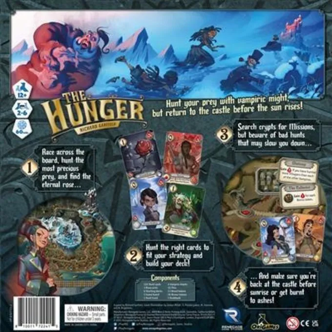 Hunger er et løb, hvor hver vampirisk spiller skal optimere deres kortdæk, jage mennesker for at vinde sejrpoint, opfylde hemmelige missioner og til sidst erhverve en rose og vende tilbage til den Slot før solopgang. Jo mere du jager, jo langsommere bliver både dig og dit dæk, hvilket vil gøre det sværere og sværere at komme tilbage før daggry. Kan du blive den mest berygtede vampyr uden at brænde til aske ved solopgang? .