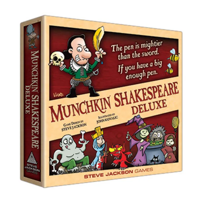 Munchkin Shakespeare Deluxe leveres med en brugerdefineret seks-sidet matrice og et bord og står for at spore dit niveau og er illustreret af fan-favorit John Kovalic.