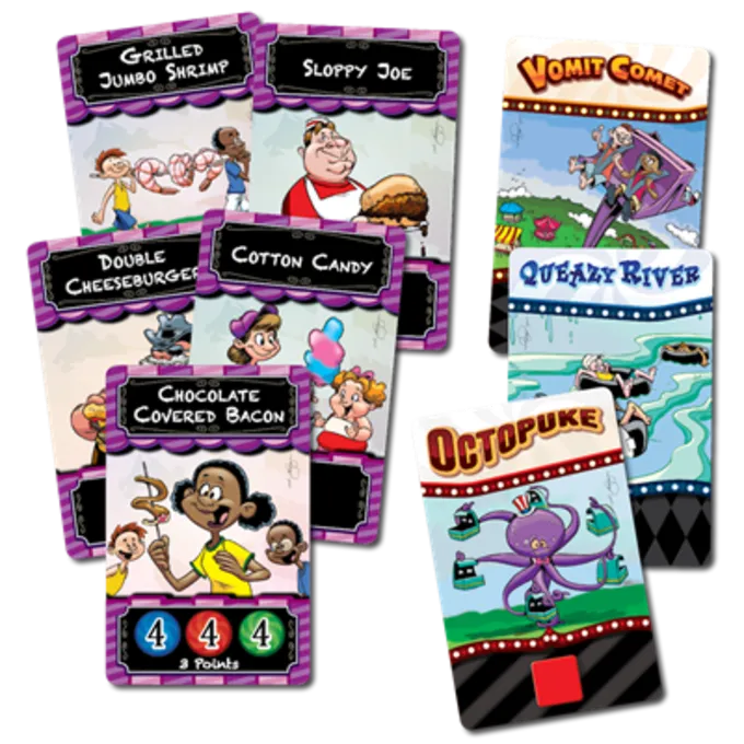 tørklæde-n-barf er et fjollet, hurtigt tempo kortspil, der holder dig limet på dit sæde. . . Medmindre du selvfølgelig er nødt til at hoppe op til Barf. Spil madkort og ride -kort, og rul derefter terningerne for at finde ud af, hvilken spiller der kan holde den mest karneval mad nede. Spiser chokoladedækket bacon, mens du kører på blæksprutte? Vi tør dig!