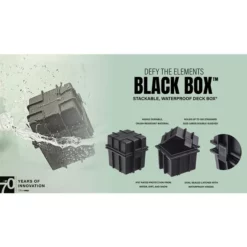 Den stable, vandtæt-watertight Black Box Deck Box® Card Storage Container har let åben og tæt forseglede låse i en Pelican-stil tekstur. Fremstillet med 20% glasfiber for at give en betydelig stigning i træk- og påvirkningsstyrke. Fugtbestandig og tryksik