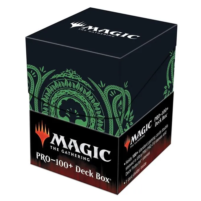100+ dækboksen har levende, fuldfarve kunst fra magi: samlingen og inkluderer en matchende dækdelere. Fremstillet med arkivsikre, ikke-PVC, stive polypropylenmaterialer, kan du gemme op til 100 dobbelt ærmer kort med selvtillid. Det selvlåsende låg holder