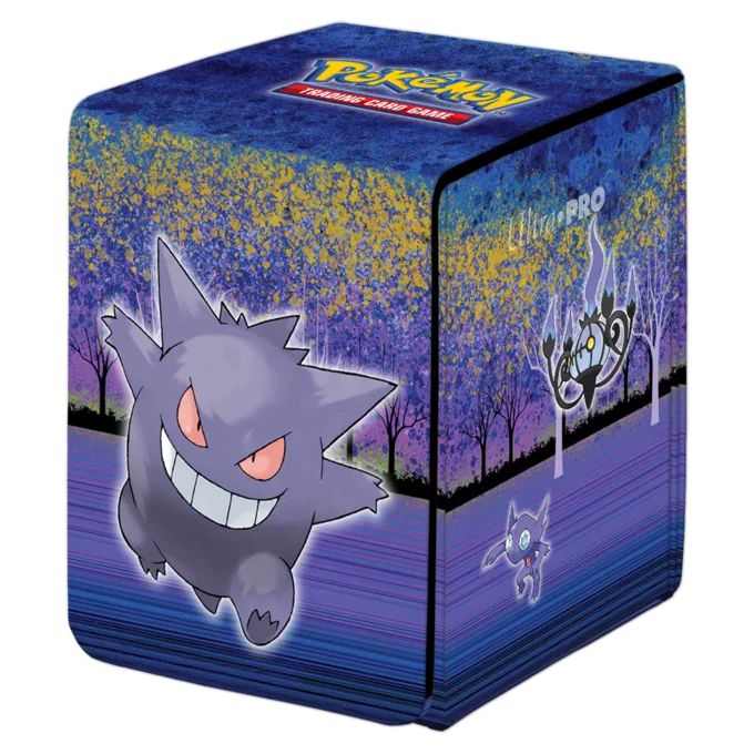 Alkove-flipboksen til Pokémon har en pulserende læder i fuld farve, en stærk magnetisk lukning og dobbelt tommelfinger hak for nem adgang til dit dæk. Denne dækboks indeholder op til 100 standardstørrelseshandelskort dobbeltærmet i Ultra Pro Deck Protector® ærmer.