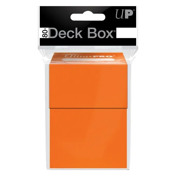Lavet med syrefri, ikke-PVC-materialer, opbevares og beskytter dine samlerobjekter i denne Pro 80+ dækboks. Denne græskar orange dækboks er designet til at indeholde handelskort, standardstørrelse (2,5 ”x 3,5”) eller mindre i Deck Protector® -ærmer. Pro 80+ dækboksen er en kompakt, økonomisk måde at transportere, organisere og opbevare dine dæk på op til 80 dobbelt ærmer kort. Denne boks inkluderer et etiketrum på toppen af dækboksen for pænt at registrere dit dæknavn med en permanent markør.