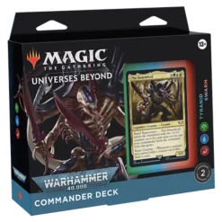 Tyranid Swarm & nbsp; universer ud over: Warhammer 40.000 & nbsp; Commander Deck Set inkluderer 1 klar til at spille grønblå-rødt dæk af 100 Magic: The Gathering -kort (2 legendariske traditionelle folie-kort, 98 ikke-olie-kort), 1 folie-ætset display-kommandør (en tyk cardstock-kopi af kommandantkortet med folie ætset ind i kortets grænse og kunst ), 10 dobbeltsidede tokens, 1 dækboks (kan indeholde 100 ærmerskort), 1 Life Tracker, 1 strategiindsats og 1 referencekort.