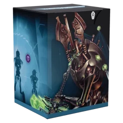 Necron-dynastierne & nbsp; universer ud over: Warhammer 40.000 & nbsp; Commander Deck Set inkluderer 1 klar til at spille sort Deck of 100 Magic: The Gathering -kort (2 legendariske traditionelle folie-kort, 98 ikke-olie-kort), 1 folie-ætset display-kommandør (en tyk cardstock-kopi af kommandantkortet med folie ætset ind i kortets grænse og Art), 10 dobbeltsidede tokens, 1 dækboks (kan indeholde 100 ærmerkort), 1 Life Tracker, 1 strategiindsats og 1 referencekort.