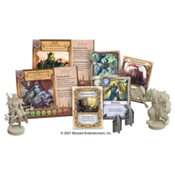 En episk bordtilstedeværelse med et stort tavle, illustrerede kort og slående miniatyrer, herunder 7 ikoniske Heroes, den truende Lich King og hans masser af ghouls og vederstyggeligheder.